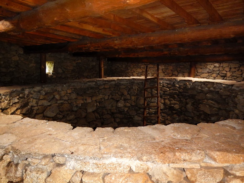 Ya estábamos de nuevo sumergidos en el castañar, junto al área recreativa a más altura. Eran las 12:04h y los excursionistas que suben en coche hasta la cercana Área Recreativa El Regajo, se estaban dando sus sencillos paseos y nos los encontraríamos a lo largo de nuestras visitas a los lugares más singulares del castañar.Ascendimos unos cientos de metros por la Garganta de la Yedra, la visita a una rústica escalera, una construcción en estado bastante precario, que asciende sujetándose a un castaño, hasta una plataforma que en su día facilitaba la caza de palomas en migración. De ahí bajamos a ver a "El Abuelo", el castaño más viejo del lugar y por lo tanto el más singular. Con sus más de 500 años y aún con vida, a pesar de haber sufrido el maltrato de los montañeros, ahora se encontraba acosado por los excursionistas, sacarle una foto medianamente aceptable nos llevó un buen rato.